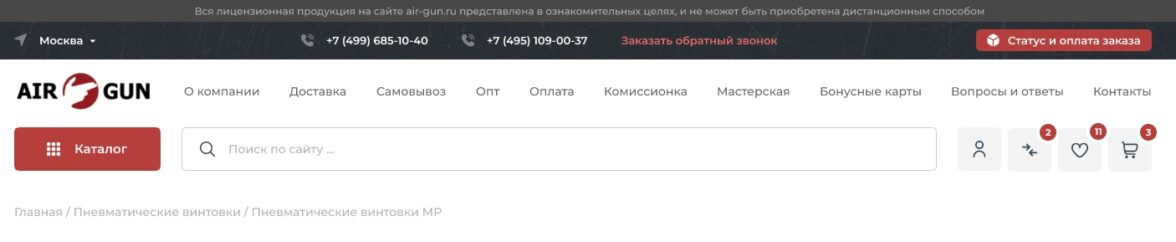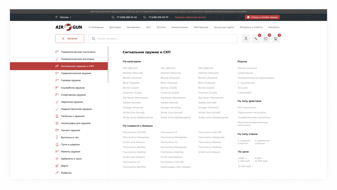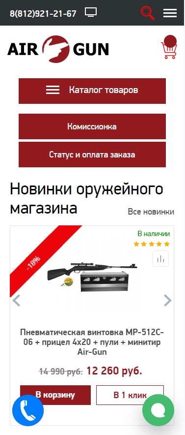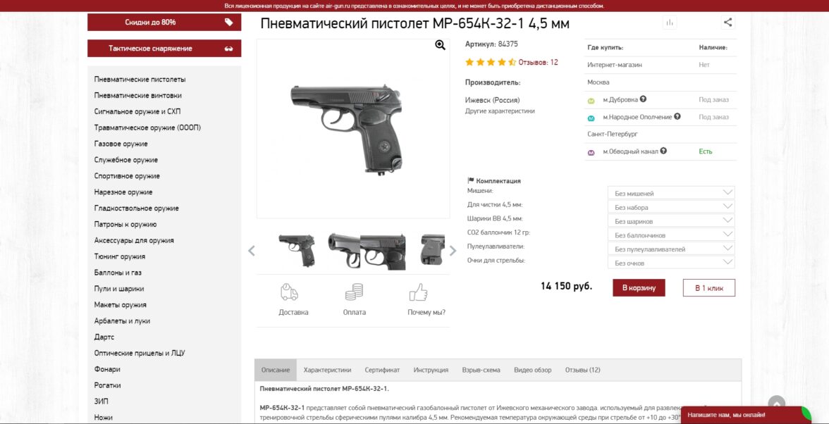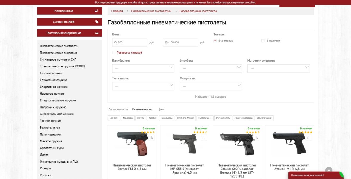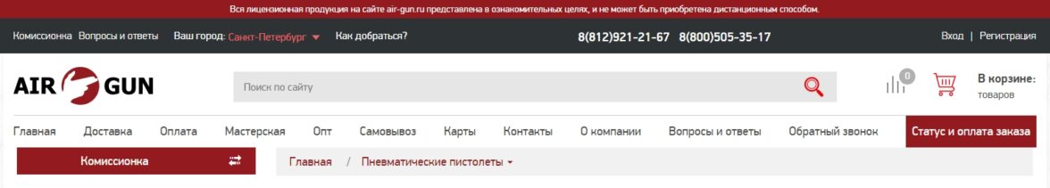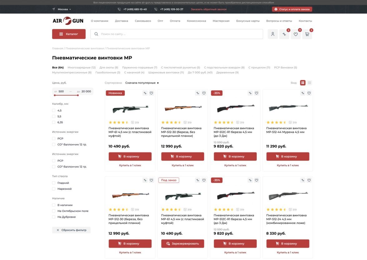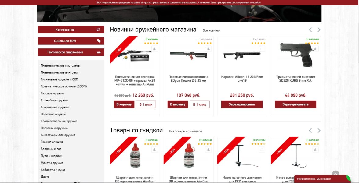 Существующий сайт компании представляет собой не только площадку для продажи пневматики и аксессуаров онлайн. Он включает в себя социальную сеть для любителей общаться на оружейные темы, тысячи статей и обзоров соответствующей тематики, а также комиссионный раздел, в котором публикуются частные объявления.