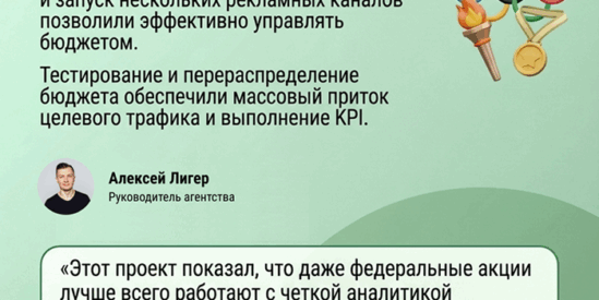 «Команда агентства взяла на себя весь интернет-маркетинг по проекту Спортивный диктант 2025 и выстроила для нас понятную систему отчетности. Мы увидели, какие каналы реально приводят участников, а какие стоит использовать только для имиджа. Отдельно отмечу оперативность реагирования на изменения по бюджету и креативам и умение объяснить сложные вещи простым языком. По итогам запуска планируем продолжать сотрудничество в следующем сезоне и развивать проект в регионах уже с опорой на полученные данные».