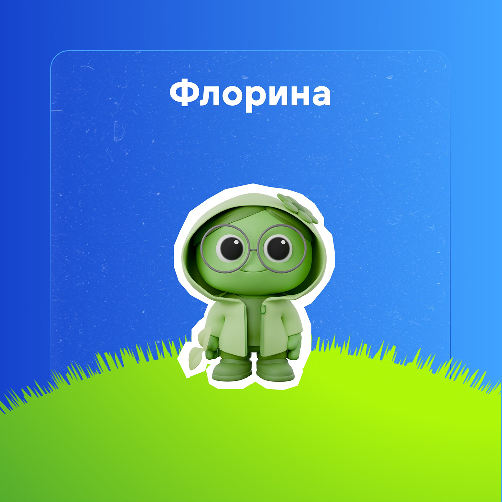 Флорина — домовёнок из Приокского района. Приокский район который славится Щелоковским хутором — большим лесопарком с озёрами и тропинками, а также Ботаническим садом ННГУ с редкими растениями и живописными пейзажами. Флорина любит зелень, книги и уютные дворы. Она обожает, когда вокруг чисто, спокойно и есть место для прогулок и вдохновения.