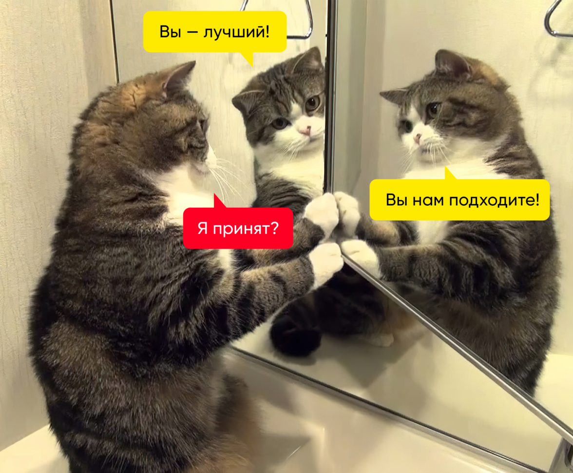 Поэтому «Якай» на собеседовании, но делай это метко, будто у тебя лимит на количество этих «я». Оно должно усиливать, а не наводить пафос в заурядном предложении. И тот, кто собеседует, должен понимать, что ты — личность, но игрок командный, поэтому не забывай про благодарности, если имел возможность работать в команде.