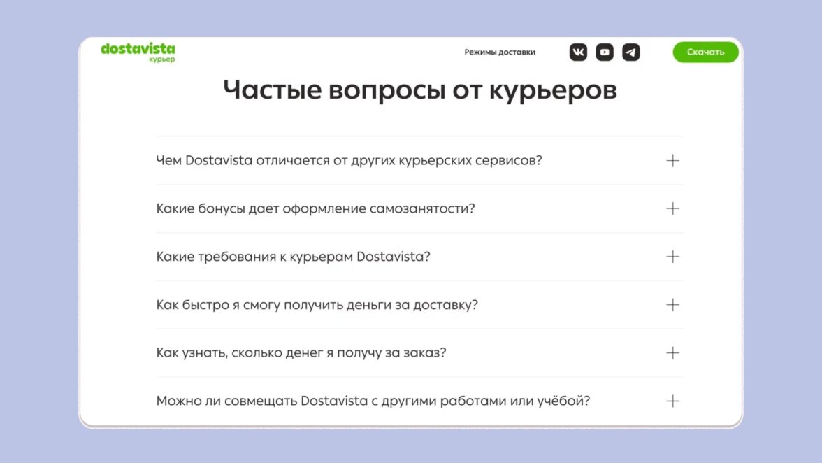 После старых тем мы перешли к новым статьям, анализируя запросы, выдачу и конкурентов. В сотрудничестве с командой Dostavista наши авторы написали статьи про график, оптимальный возраст для профессии и так далее. В процессе успели взять интервью у курьеров Dostavista, провести онлайн-опрос, изучить внутренние правила компании и еще много чего.