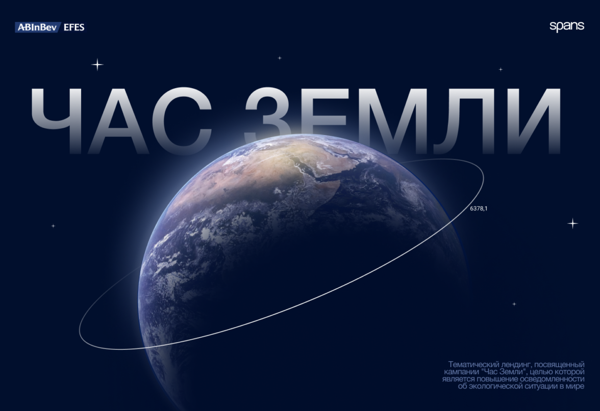 С AB InBev Efes мы работаем 3 года, выполняя различного рода задачи — от полной поддержки корпоративного сайта, до разработки диджитал спецпроектов. В тот раз ребята поставили задачу осветить инфоповод — «Час Земли». Нам дали огромный пласт текста и полную свободу на разработку. На всё про всё у нас было 1,5 недели до старта акции. Идея дизайна родилась сразу.