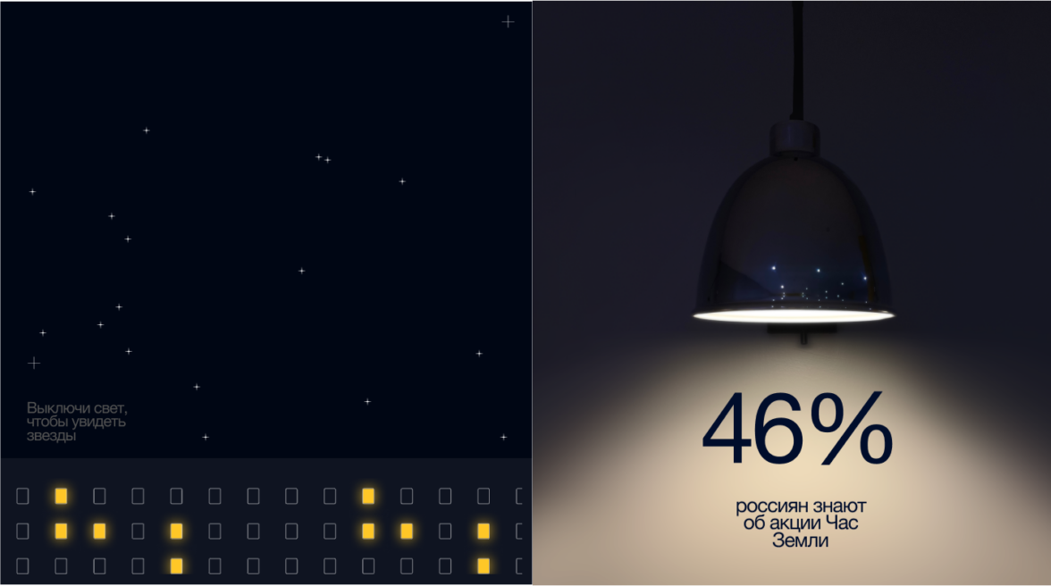 Например, на момент создания этого проекта, то есть за 11 лет существования этой акции в России, уже 46% россиян знают о «Часе Земли».