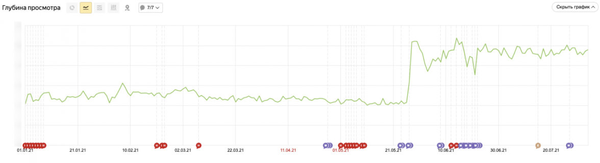 1. Глубина просмотра. Рост по показателям почти в два раза.