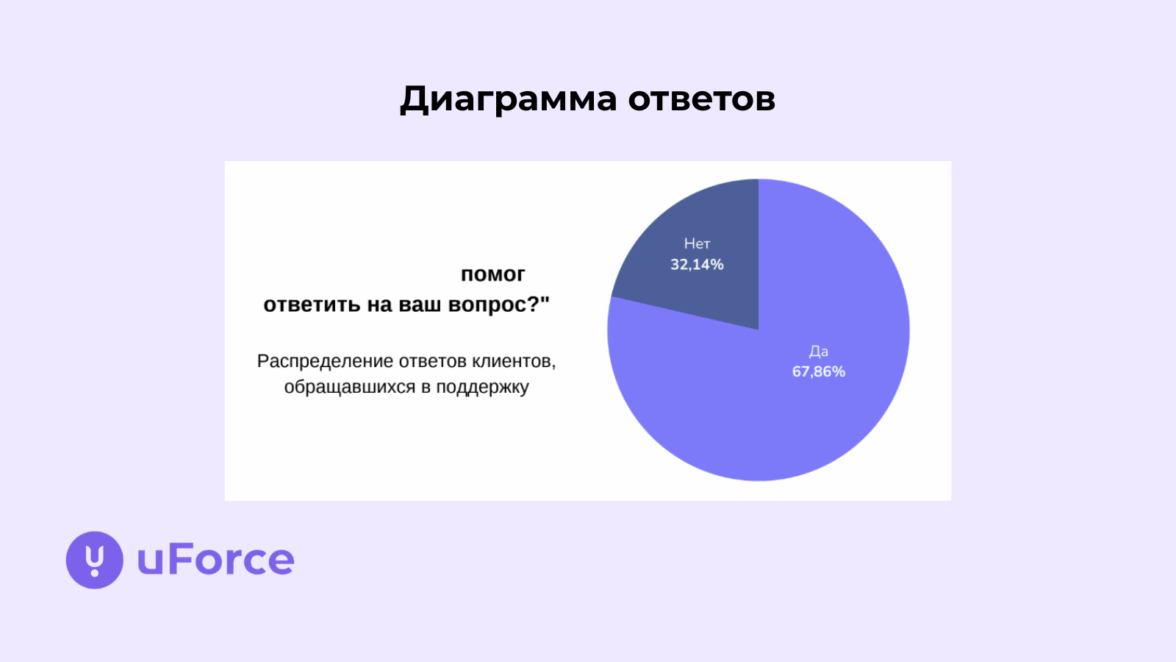 Дополнительно мы в очередной раз убедились в эффективности внедрения повторных касаний — дополнительного контакта с клиентами, которые не ответили на первый запрос. Благодаря напоминаниям удалось увеличить конверсию откликов примерно на 15 %. Агентство uForce также выработало чёткий алгоритм фильтрации ответов, чтобы исключать формальные и неинформативные отклики, и это повысило ценность итогового анализа.