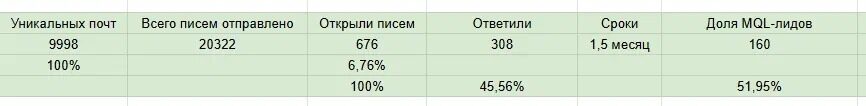 Разослали более 20 000 писем за 1.5 месяца.