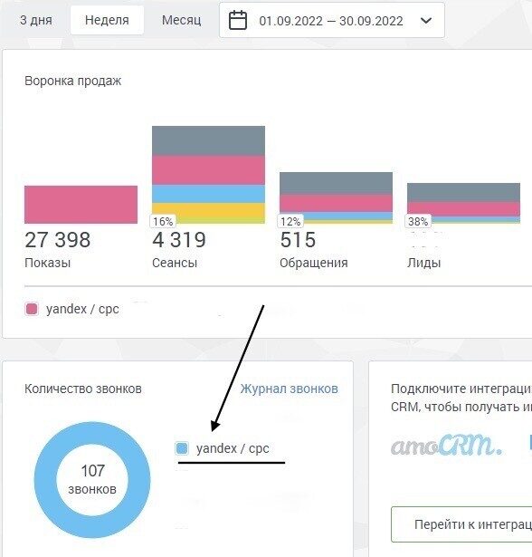 Количество звонков по данным колл-трекинга составило ☎ 107 входящих: