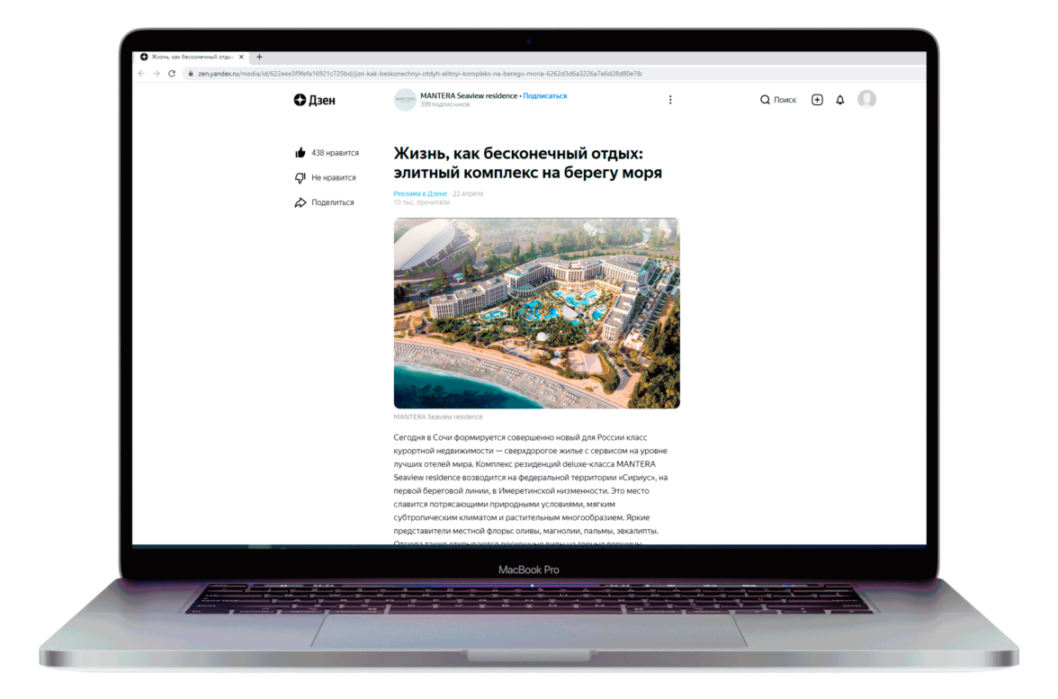 Например, для «Героини Татлера» мы обыграли реальный кейс обмена роскошного судна на резиденцию в Mantera Seaview residence. В то время на слуху как раз были новости о конфискациях яхт российских олигархов в странах Европы. Другой пост на светском канале «Антиглянец» начали с информации о покупке особняка Беном Аффлеком и Дженнифер Лопес. В публикациях на деловых и финансовых каналах «заходы» отвечали теме финансовых рисков и необходимости инвестиций в твёрдую валюту — недвижимость.