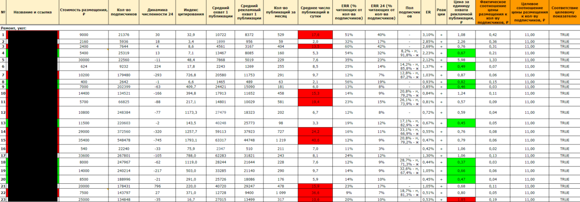 Всего мы потратили 55 820 рублей на рекламу в каналах с суммарной аудиторией 1 190 945 подписчиков. За эти деньги мы получили 103 775 просмотров и 856 переходов на сайт. Ниже более подробная таблица с делением по типам каналов.
