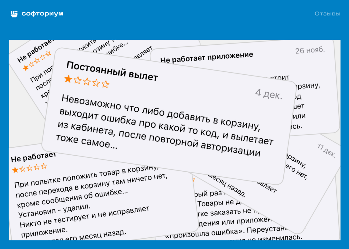 Вот что о корзине говорили пользователи. Из-за ее нефункциональности сеть теряла клиентов и опускалась в рейтингах