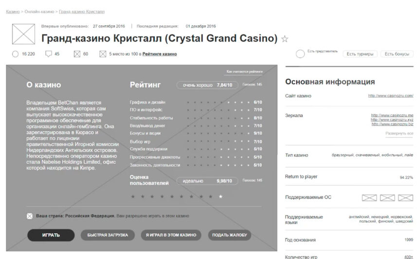 раздел с информацией о действующих казино.