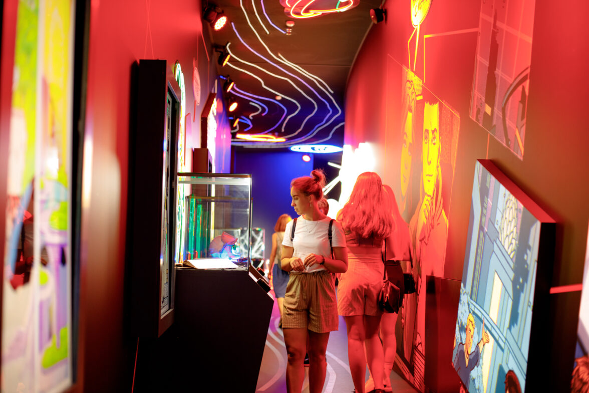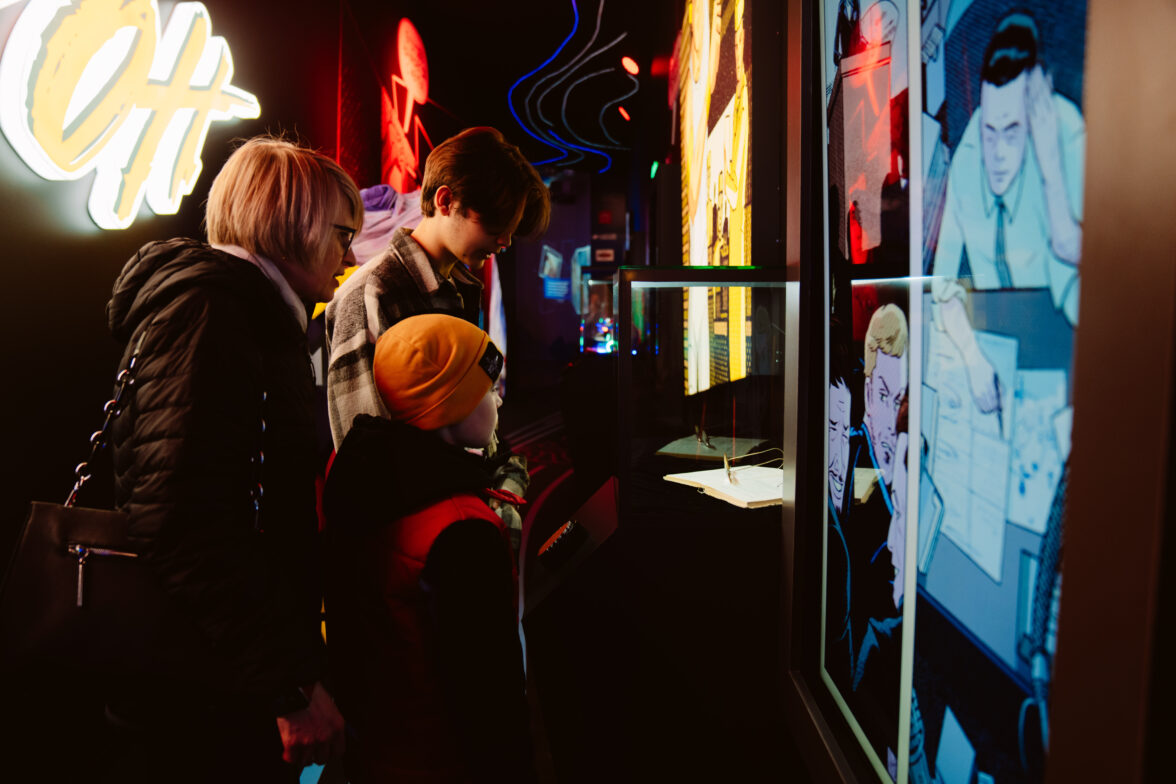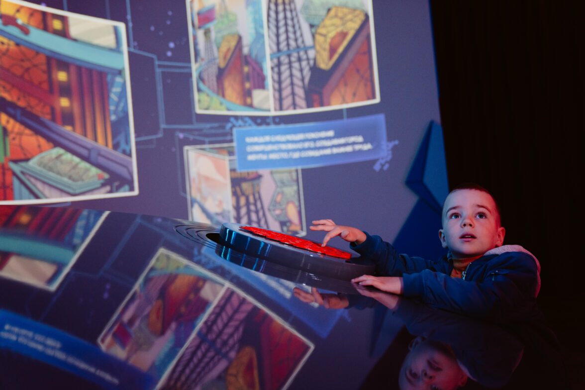 В интерактивной зоне были собраны все элементы комикса, с которыми посетители могли взаимодействовать. Все, что касалось истории, устройства и особенностей города, находилось здесь.