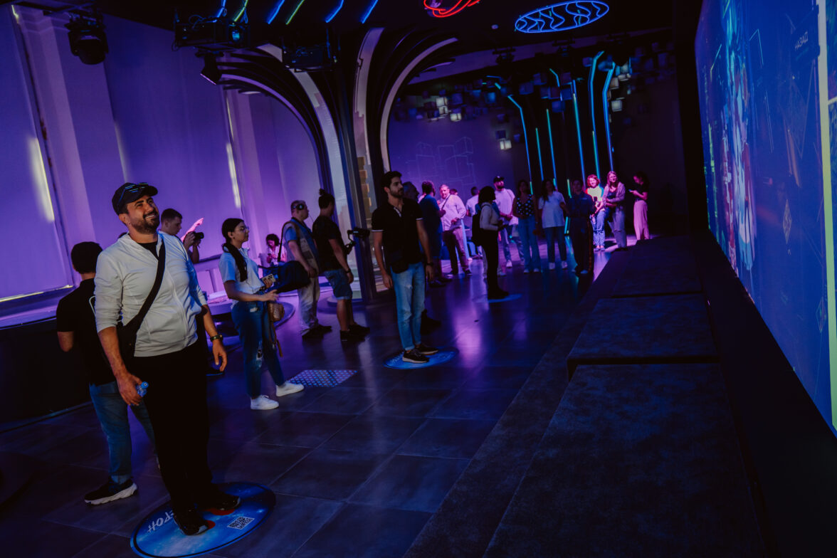 Одна из зон, куда обычно выстраивалась очередь — именно здесь любой желающий может сам создавать музыку! Мы разработали особую связку тачскрина с интерактивным музыкальным столом Reactable: появился модуль обучения и возможность скачать свой трек на смартфон.