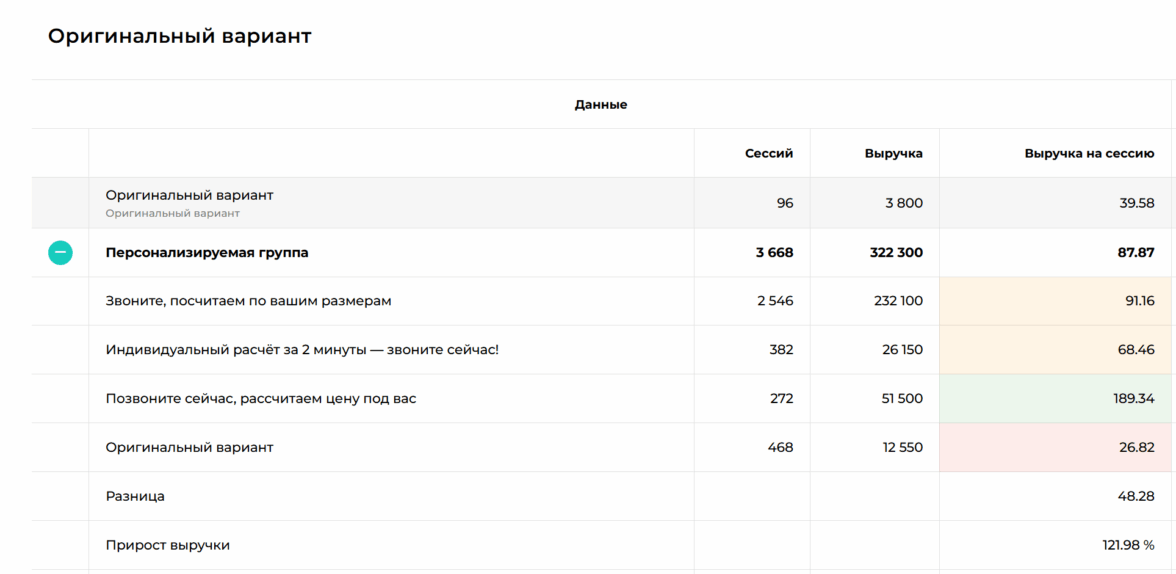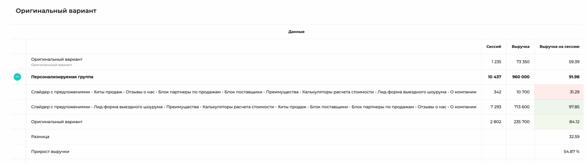 • роста микроконверсий (заявка, звонок, переход в каталог).Ниже основные варианты персонализаций, которые дали существенный прирост, а всего их у нас работает на пути пользователя 24 штуки