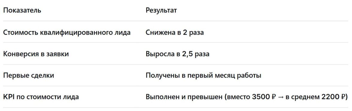Но главный результат — не просто цифры, а полная прозрачность для клиента. Теперь он видит, какой именно рекламный рубль приносит реальные сделки, и может принимать взвешенные решения о дальнейшем масштабировании.