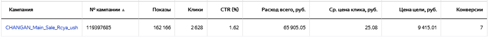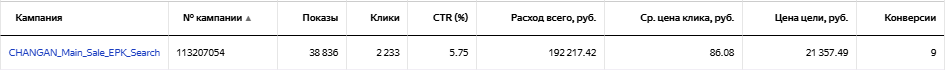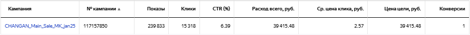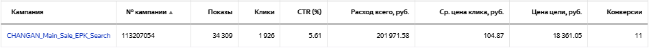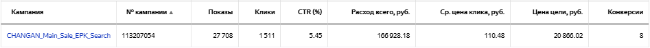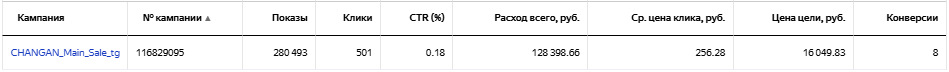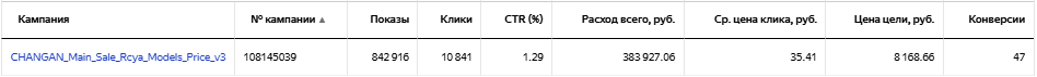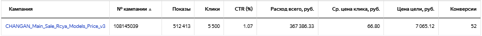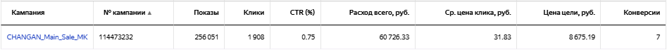 Даже после ежедневного исключения площадок и внесения корректировок не стал приносить результат по приемлемой цене, поэтому был остановлен. Принес 1 конверсию по цене 39 415 рублей.