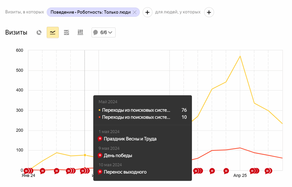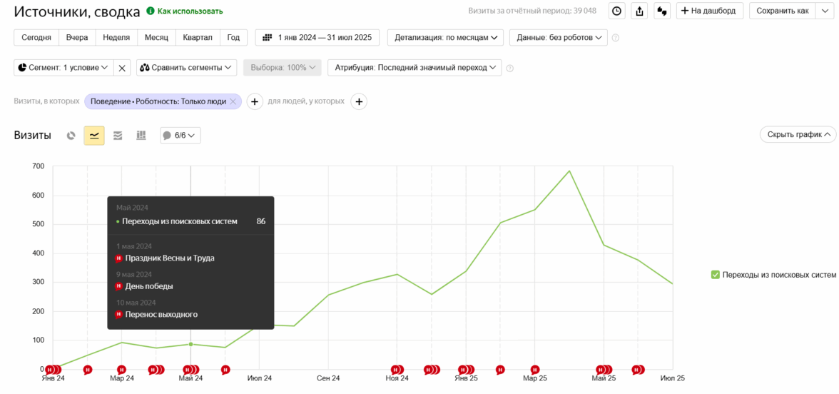 К маю 2025 684 визита. Рост почти в 8 раз.