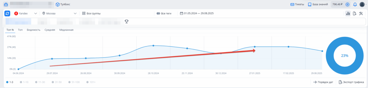 Процент позиций в ТОП-3 Яндекса