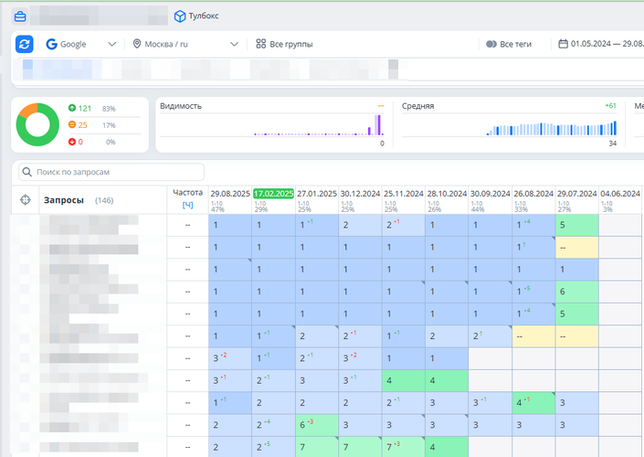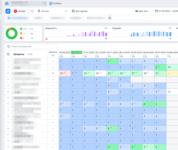 После расширения СЯ до 150 запросов: процент в ТОП-10 остался примерно на том же уровне (60–70%), но количество продвигаемых запросов выросло втрое.
