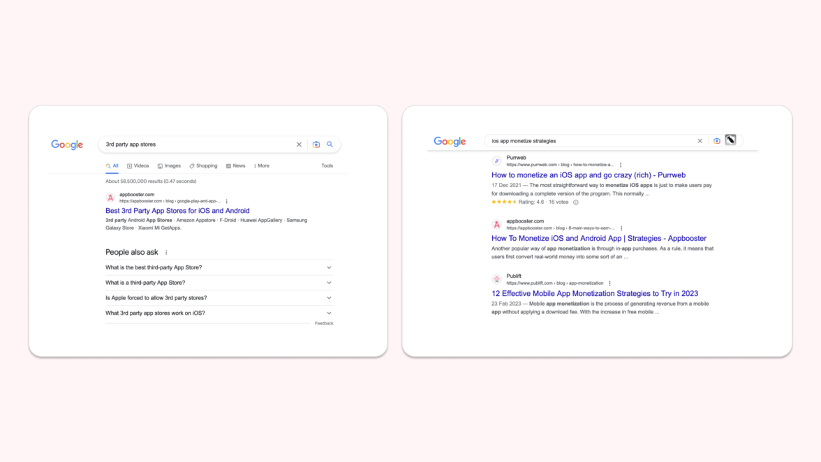 С конца 2021-ого и всю зиму 2022-ого мы работали над качественным контентом для «Яндекса». Это были бесконечные итерации для оптимизации статей и манипуляции с их длиной для попадания в топ. К нашей радости (и к радости Appbooster, разумеется) всё получилось: число попаданий в топ-10 по запросам о монетизации и продвижении мобильных приложений выросло на 20%.