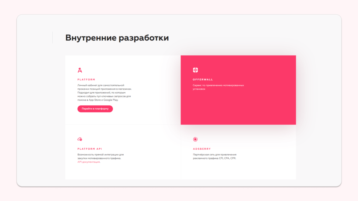 Сюрприз (аккурат под елочку) пришел, откуда не ждали. Выяснилось, что вмешиваться в дизайн сайта нам никто не разрешал. Команда Appbooster справедливо заметила, что они не просто компания, а бренд, поскольку речь идет не только об оказании услуг, но и о конкретном продукте — автоматизированной платформе по продвижению мобайл-приложений. А если есть продукт, то есть и выстроенный вокруг него имидж, связанный и с сайтом в том числе. К тому же над каждой страницей сайта вдумчиво потрудился дизайнер. Был разработан концепт, согласованы детали, и менять всё это наши заказчики не были готовы, даже в угоду классных SEO-результатов.