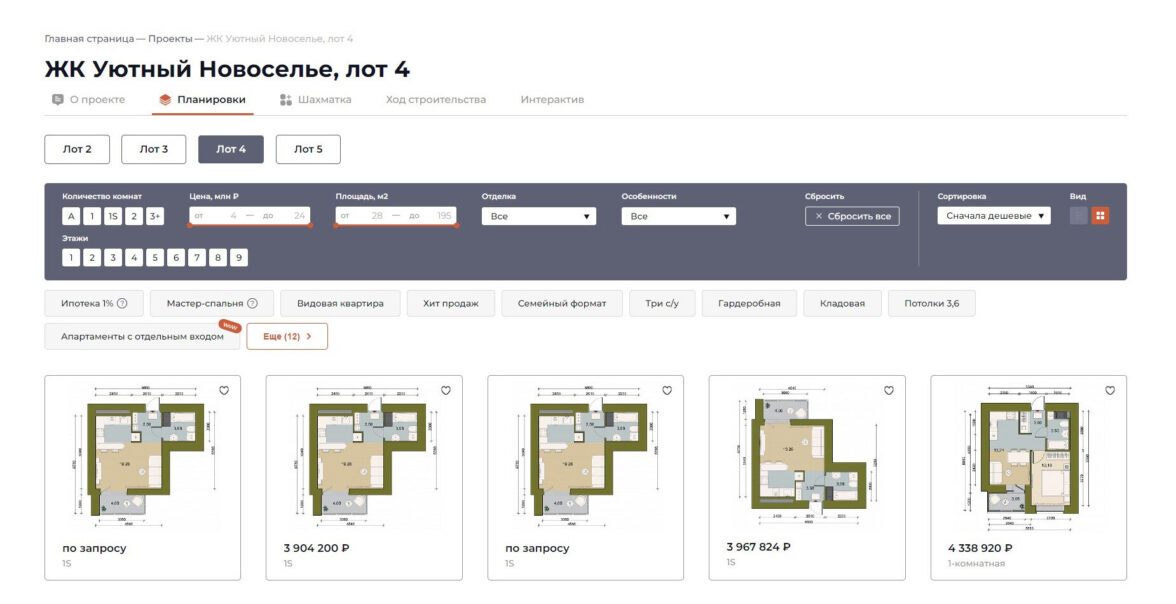 возможность переключиться на любой из корпусов ЖК, если возникает ситуация, когда в конкретном корпусе нет подходящего варианта. Не нужно долго искать меню, чтобы выбрать;
