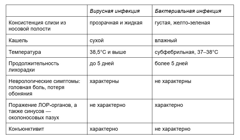 Таблица в статье про бактериальную и вирусную инфекции