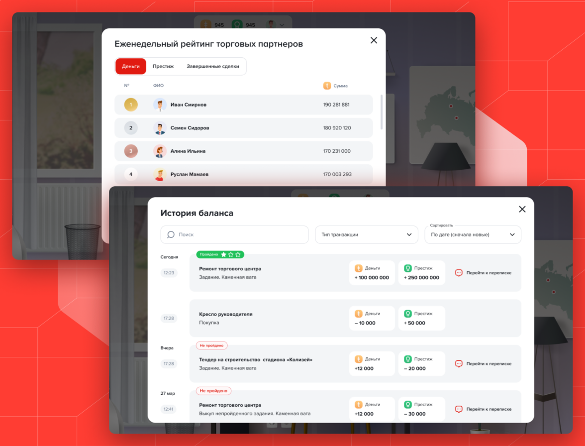 Напомним, первый отвечает за покупку косметических предметов (столы, стулья, переезд в новый офис), а рейтинг за место в общей таблице.