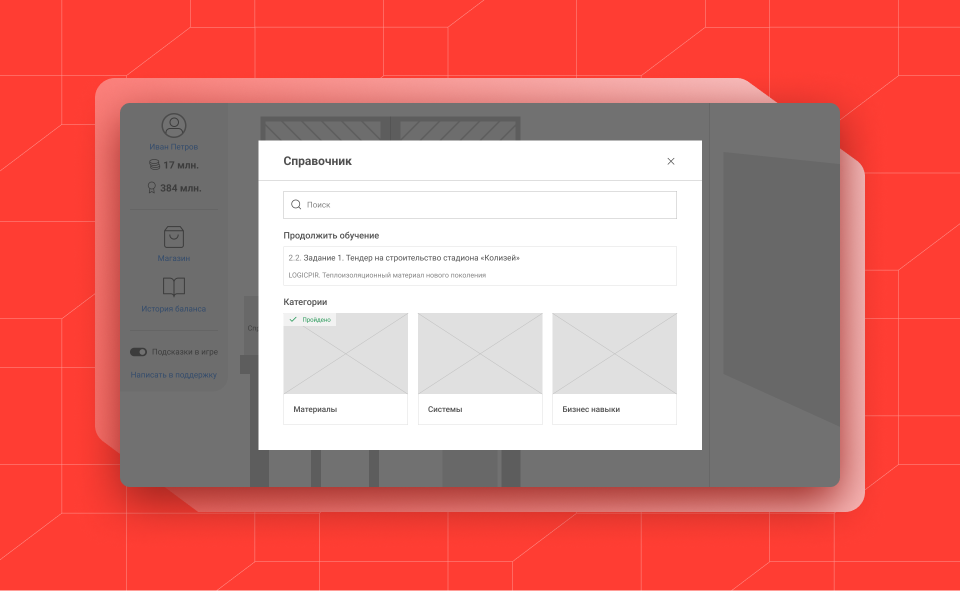 После реализовали кликабельный прототип, в котором показали основной функционал «ТЕХНОМАТРИЦЫ» и продемонстрировали игровую часть. Если вам интересно попробовать этот прототип, пишите в комментарии и мы оставим ссылку.