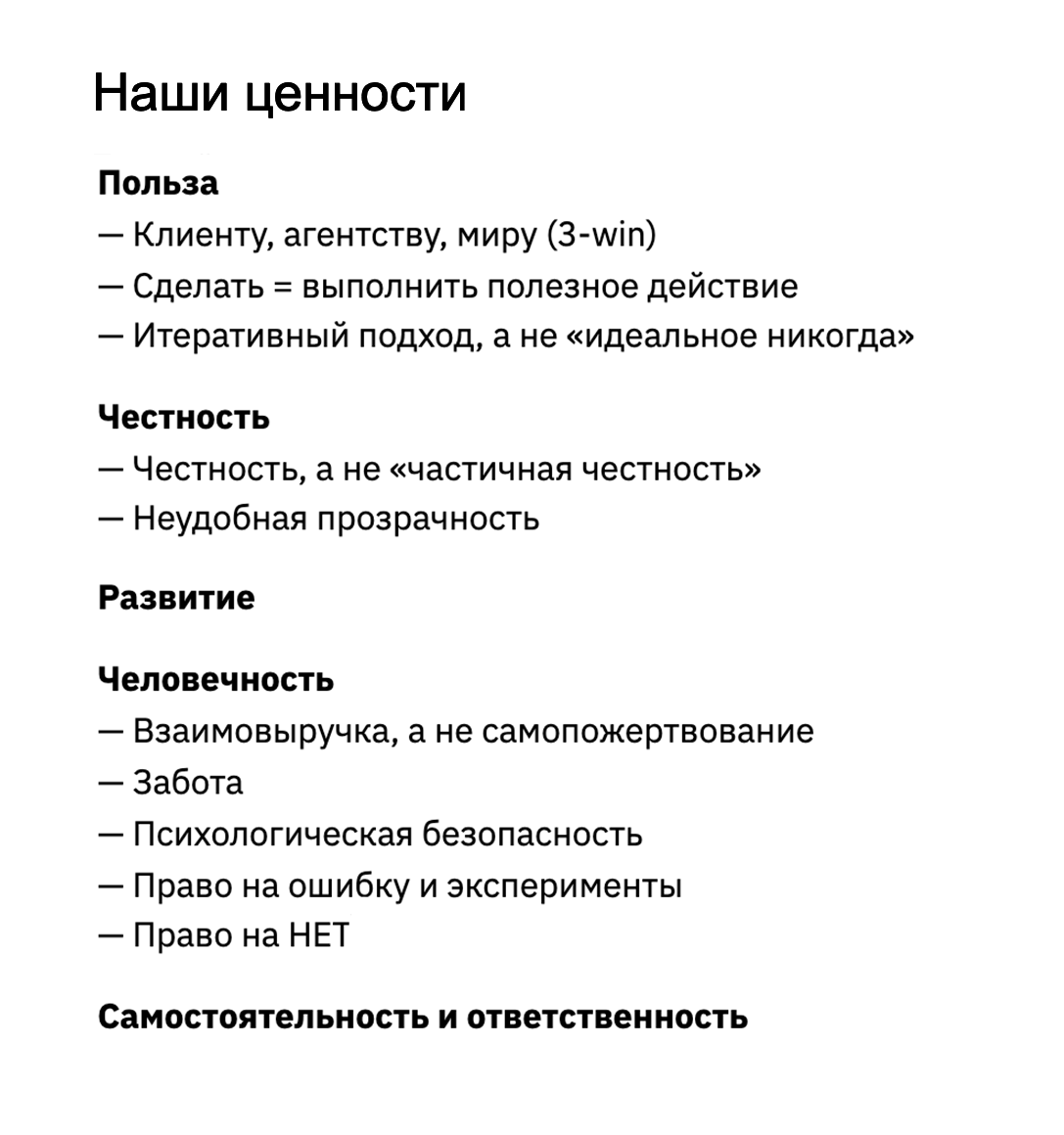 Ценности IT-Agency, которые мы сформулировали на основании опроса сотрудников