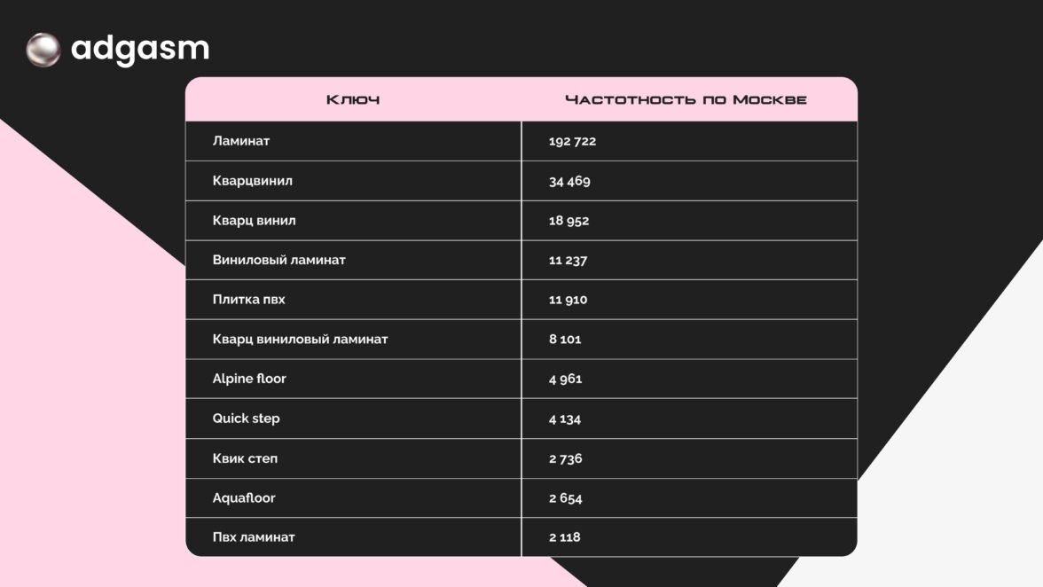 На первых местах оказались «ламинат», «кварцвинил» и «кварц винил».