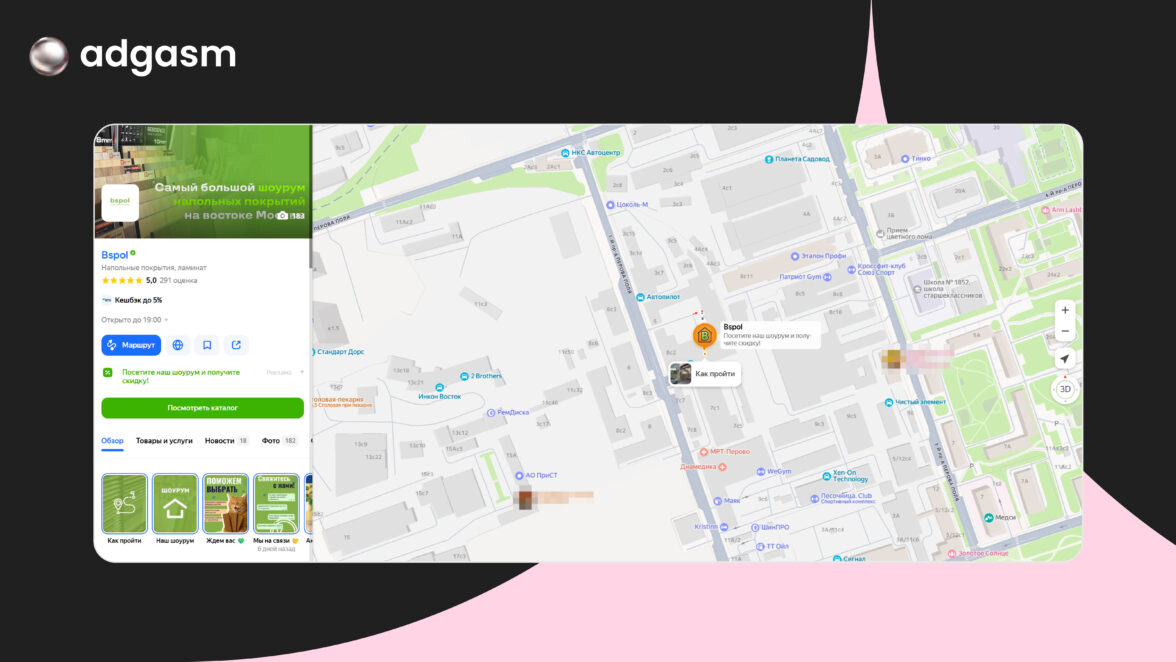 Привет, на связи Adgasm! 4 года мы настраивали и оптимизировали контекстную рекламу для магазина напольных покрытий BSPOL в Яндекс Директе. Стабильно хорошие результаты — здорово, но мы в Adgasm всегда ищем возможности для кратного роста и новые пути развития проекта. На этот раз нашли их там, где не ждали — в Яндекс Картах.