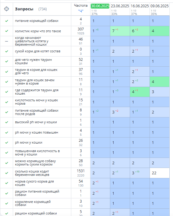Позиции по тестовым ключам выросли с 35% до 37% в ТОП-10