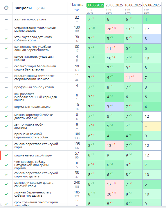 Пауза в публикациях приводит к просадке. Даже двухмесячный простой дал ощутимое снижение доли ТОП-10 и числа конверсий. Поисковые системы и пользователи быстро реагируют на отсутствие активности.