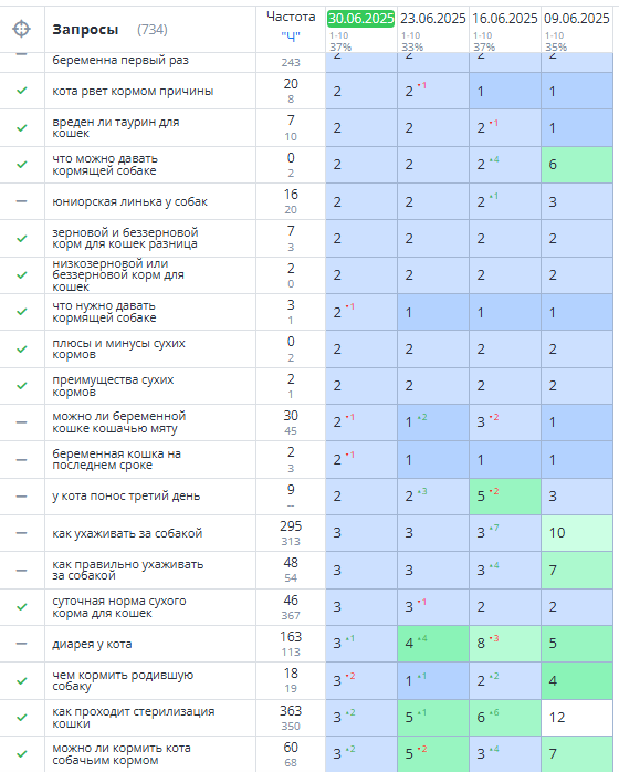 Ставка на инфоконтент. У проекта были шансы зайти в ТОП по статьям, связанным с кормлением животных — при условии стабильного размещения и грамотной оптимизации.