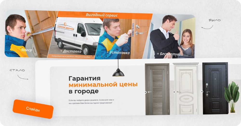 Тем не менее, заказчик чувствовал себя достаточно хорошо: у него был работающий инструмент, который позволял клиентам купить дверь полностью онлайн, не выходя из дома. Многие конкуренты при этом еще не пришли к развитию онлайн-продаж. Собственно, это был переломный момент: весной 2020 года компаниям пришлось спешно запрыгивать в поезд онлайн-продвижения. И те, кто уделил этому внимание раньше, оказались в более выгодном положении.