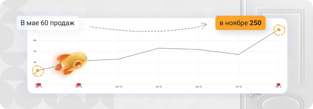 Выросли продажи и через сайт. В качестве примера тот же 2018 год: в мае было 60 продаж на сайте, а в ноябре уже 250.