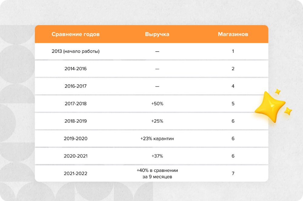 Год от года выручка клиента прирастала, увеличивалось число магазинов. Бизнес развивается, в том числе с нашей помощью.