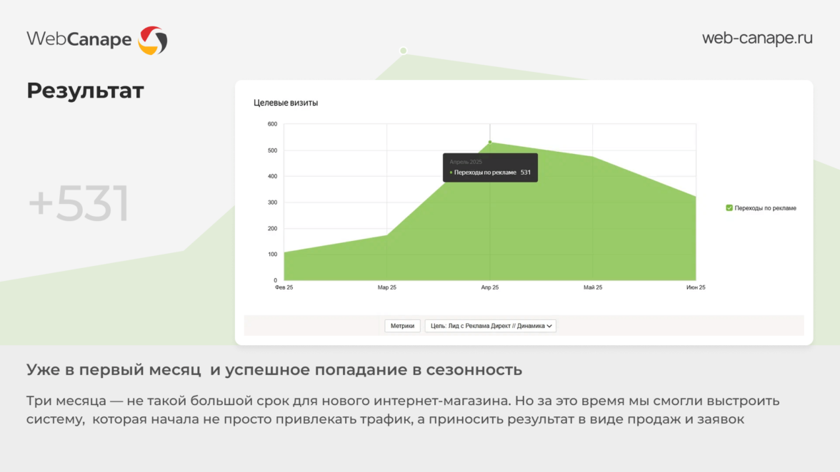 Три месяца — не такой большой срок для нового интернет-магазина. Но за это время мы смогли выстроить систему, которая начала не просто привлекать трафик, а приносить результат в виде продаж и заявок.