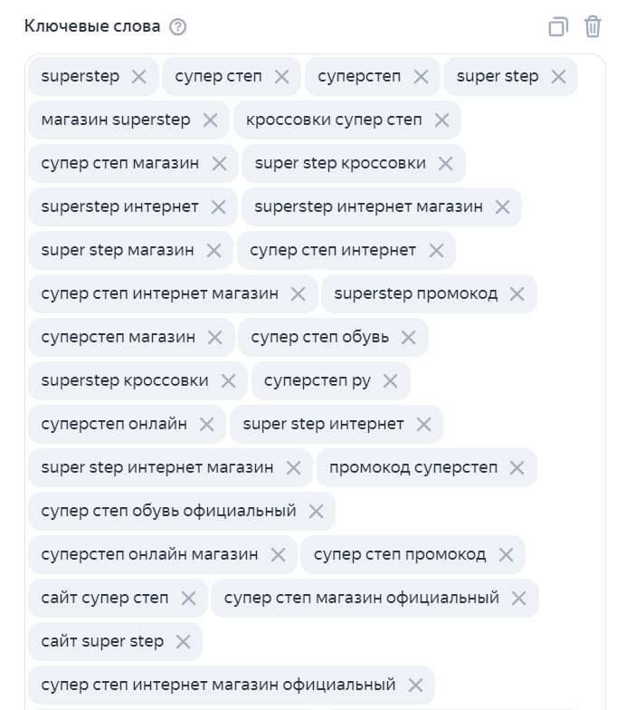 Эти же настройки снижают показ предложений конкурентов в Поиске по брендовому запросу Superstep.