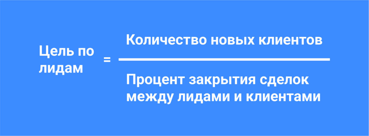Количество новых клиентов ÷ Процент закрытия сделок между лидами и клиентами = Цель по лидам