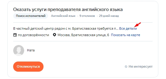 В списке предложений нас заинтересовал один заказ. Нажимаем на «Все детали», чтобы ознакомиться с условиями подробнее.