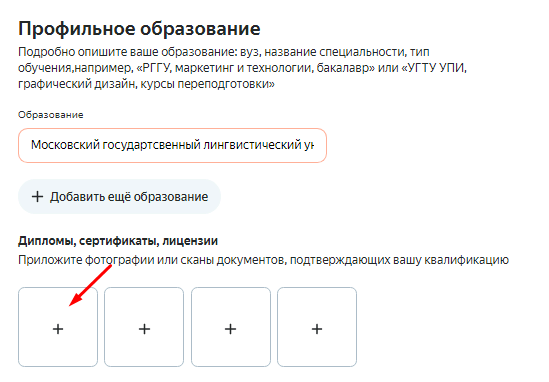 В дополнительном описании стоит прописать то, что позволит клиенту рассмотреть идеально подходящего ему специалиста: преимущества сотрудничества, особенности работы (подход, методики) и другие важные данные. Чем больше информации есть у заказчика — тем выше вероятность, что он выберет именно вашу карточку.