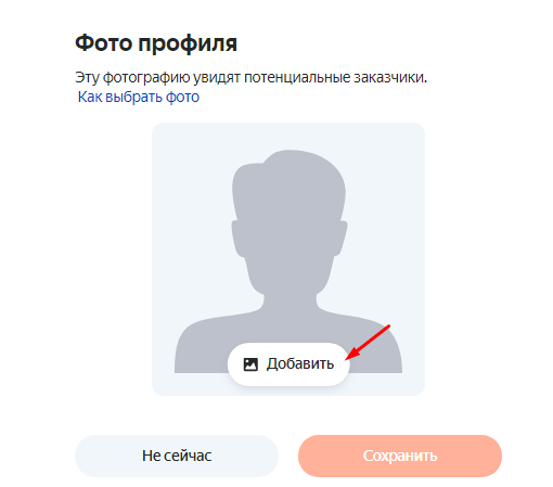 Первый этап — загружаем фотографию профиля. Выбору подходящей фотографии стоит уделить особое внимание — фото позволяет расположить к себе потенциальных клиентов.