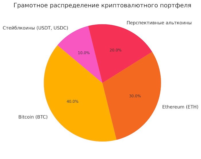 ✔ 20% Перспективные альткоины (Solana, Polkadot, Avalanche) – проекты с высоким потенциалом роста.
