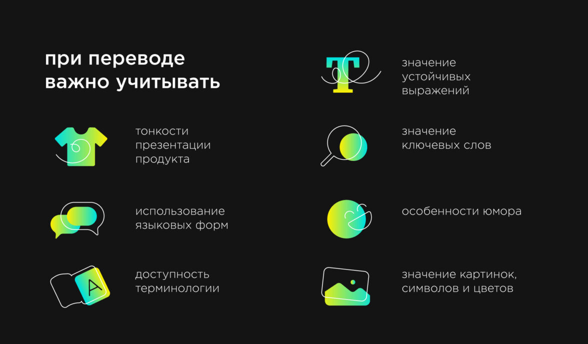 Важное напоминание. Если бренд направлен не только на русскоязычную аудиторию, будьте готовы столкнуться с проблемой перевода. Не следует использовать прямой перевод на иностранный язык. Так вы рискуете потерять заданную тональность — и иностранная аудитория воспримет вас неправильно. Для точной иноязычной передачи именно того сообщения и стиля, которые вы хотите донести, стоит обратиться к специалистам.