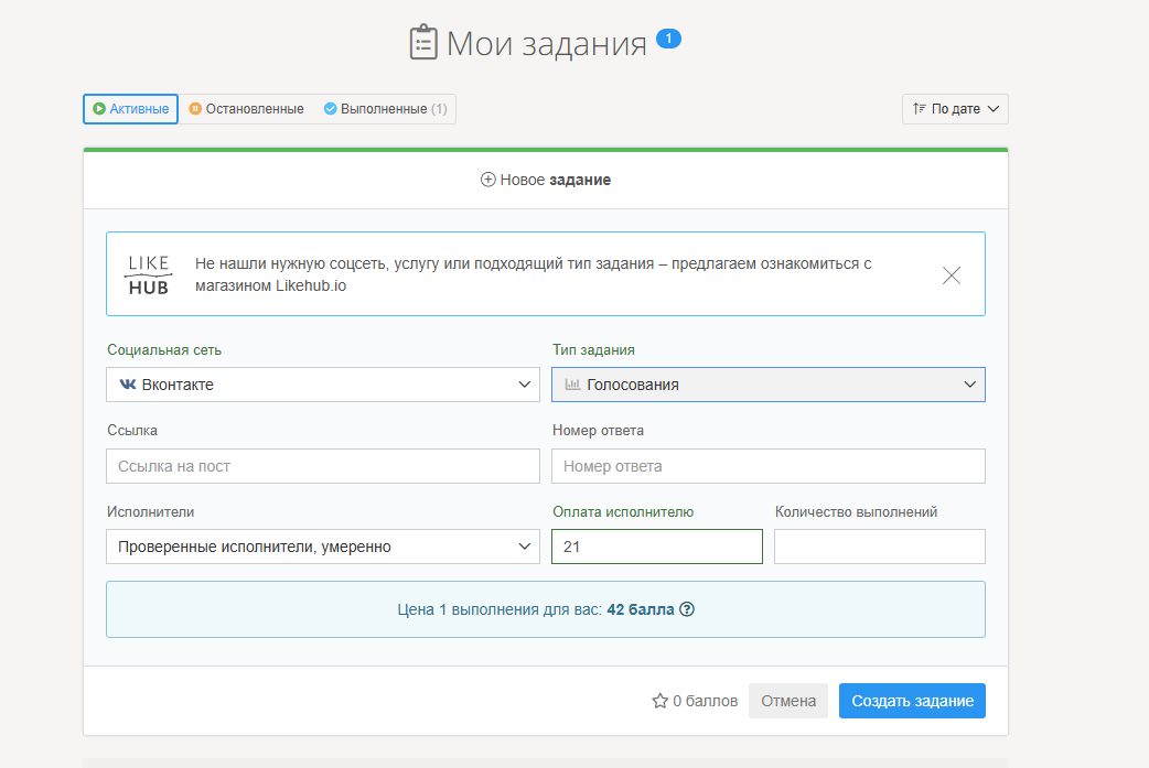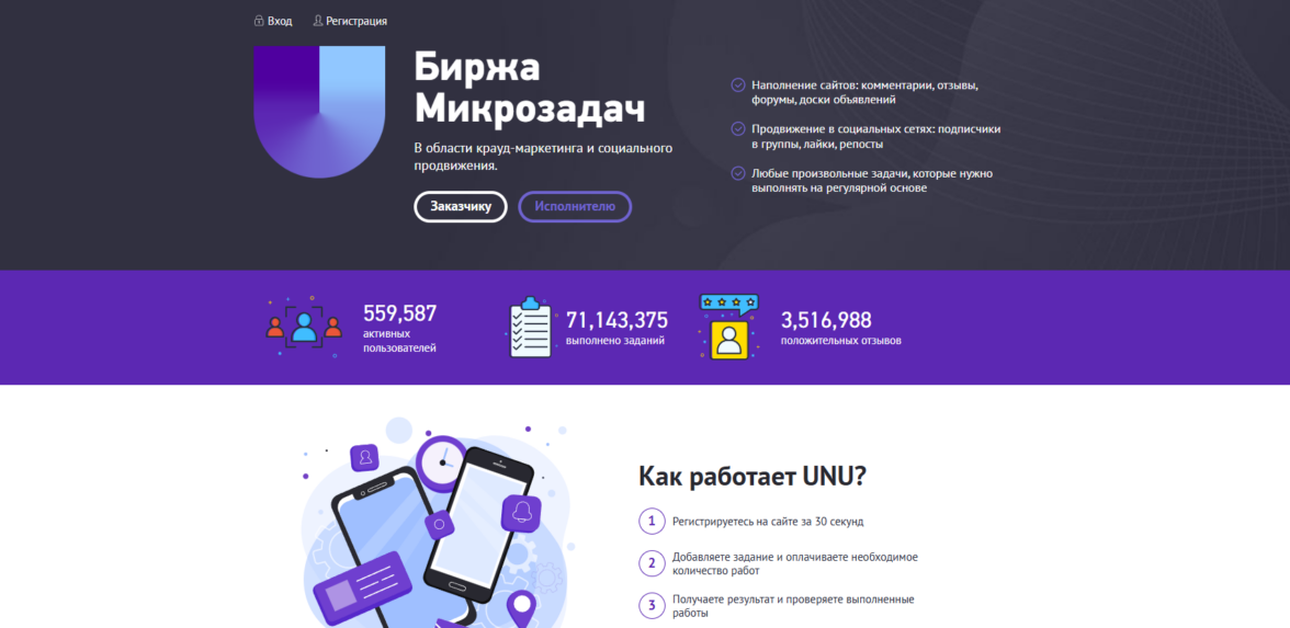 Это не совсем сервис для продвижения в социальных сетях. UNU — это биржа микрозадач. На платформе можно создать отдельное задание по накрутке голосов в ВК — это задание будут выполнять реальные люди.