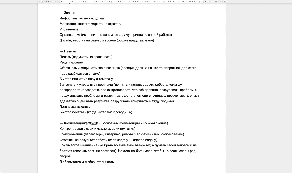 Несмотря на то что я сама главред, мне было сложно составить вакансию. Я в общих чертах знала, что мне нужен кто-то вроде помощника, который умеет писать, редактировать и вести задачи. Так, чтобы доверить ему что-то и знать, что он справится. Не было времени растить кого-то с нуля: нужен был самостоятельный специалист.