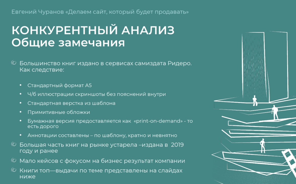 Если вы не Рэй Крок и не Андерс Дальвиг, есть другой вариант — собрать и систематизировать информацию, чтобы читатель применил знания на практике и сказал автору спасибо. Вот с Евгением Чурановым мы пошли по второму пути и написали книгу-руководство «Как сделать из сайта канал продаж».