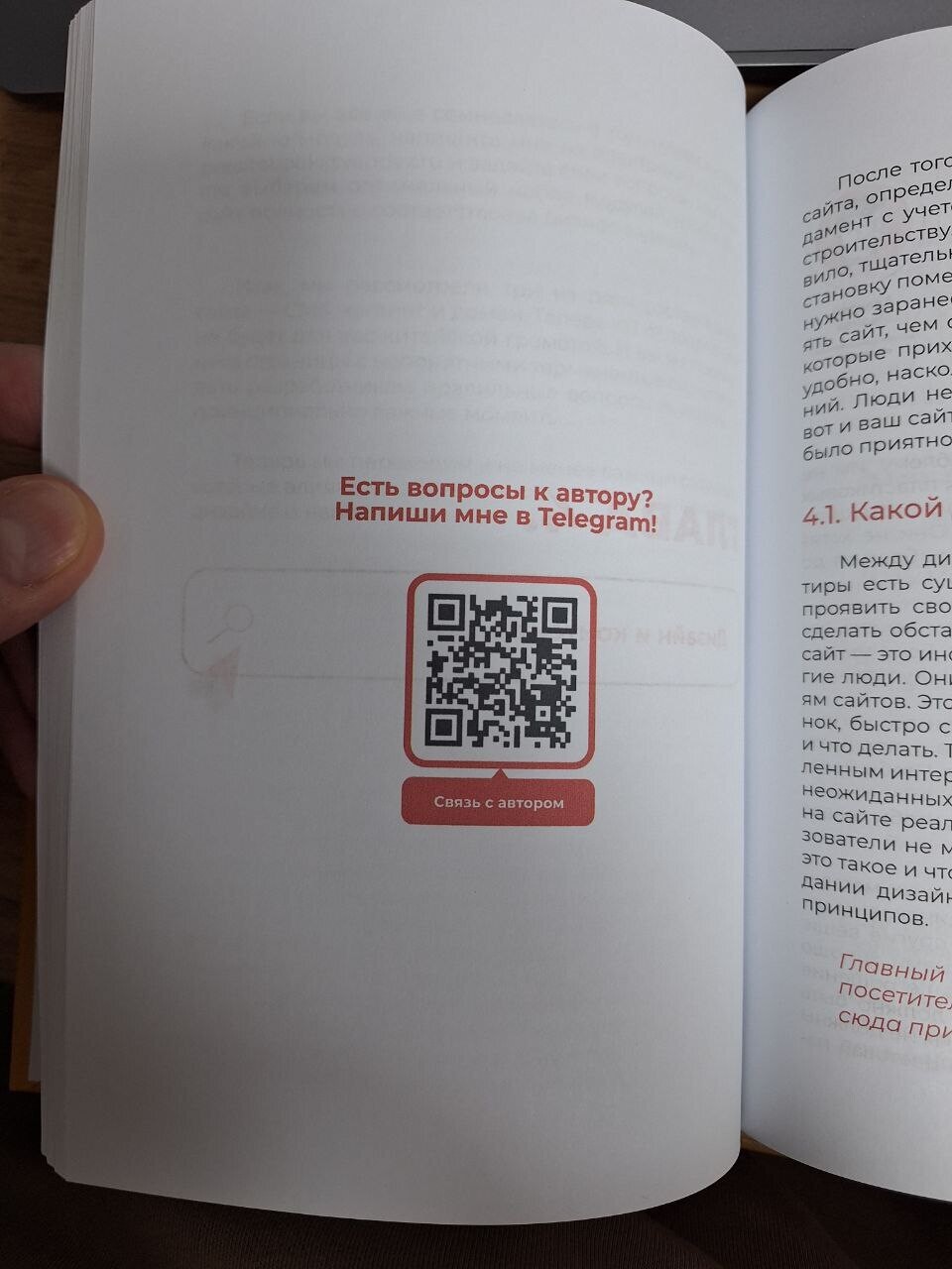 Полезные ссылки зашивали в QR-коды. Читатель может, например, перейти на сайт WebCanape и увидеть примеры работ. Или перейти в соцсети и подписаться на автора. Когда речь идет о бизнес-книге, рассказывать про продукт или услугу не только можно, но и нужно.